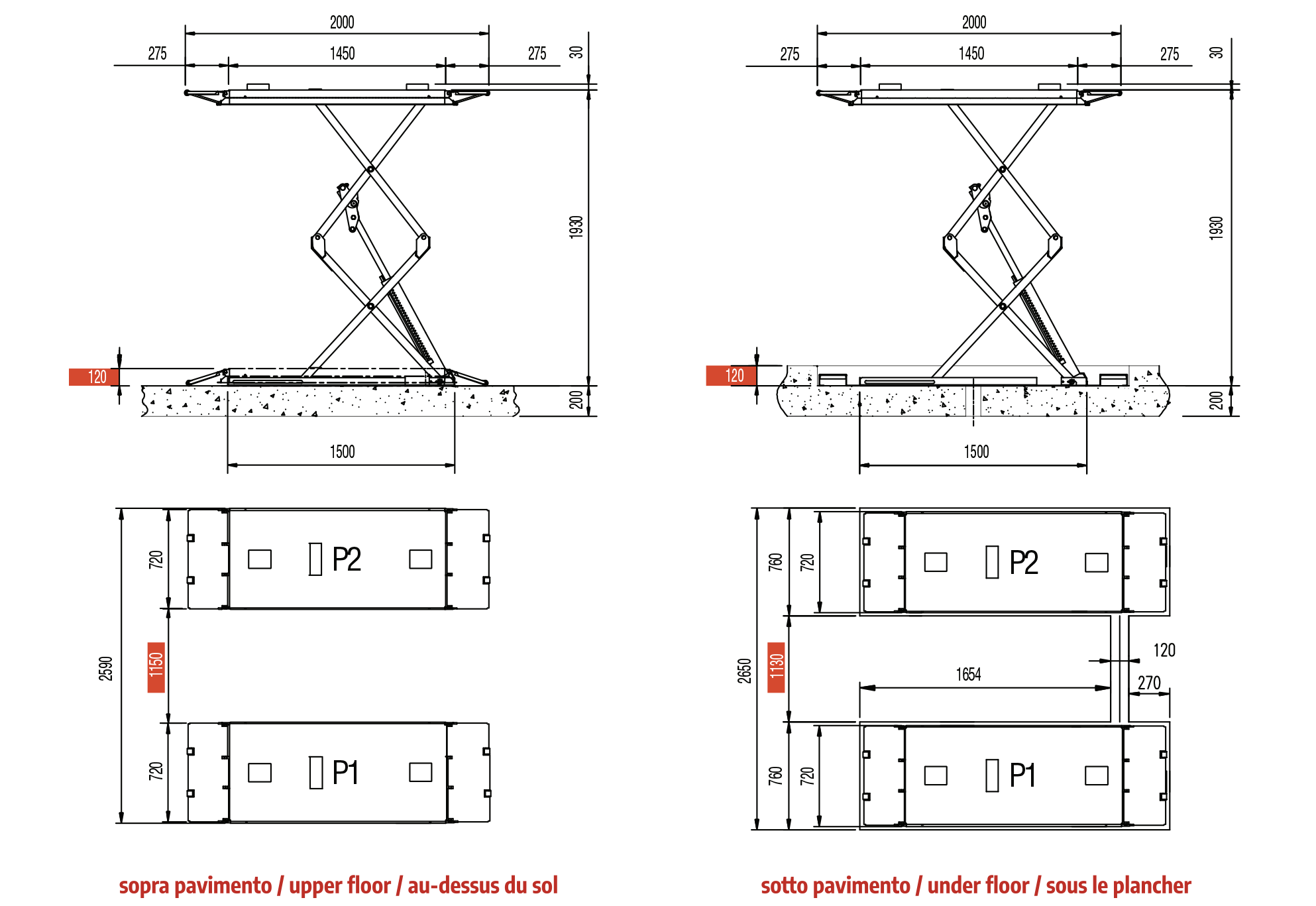 4 Snodi centrali larghi 240 mm sostenuti su quattro punti di movimento portanti