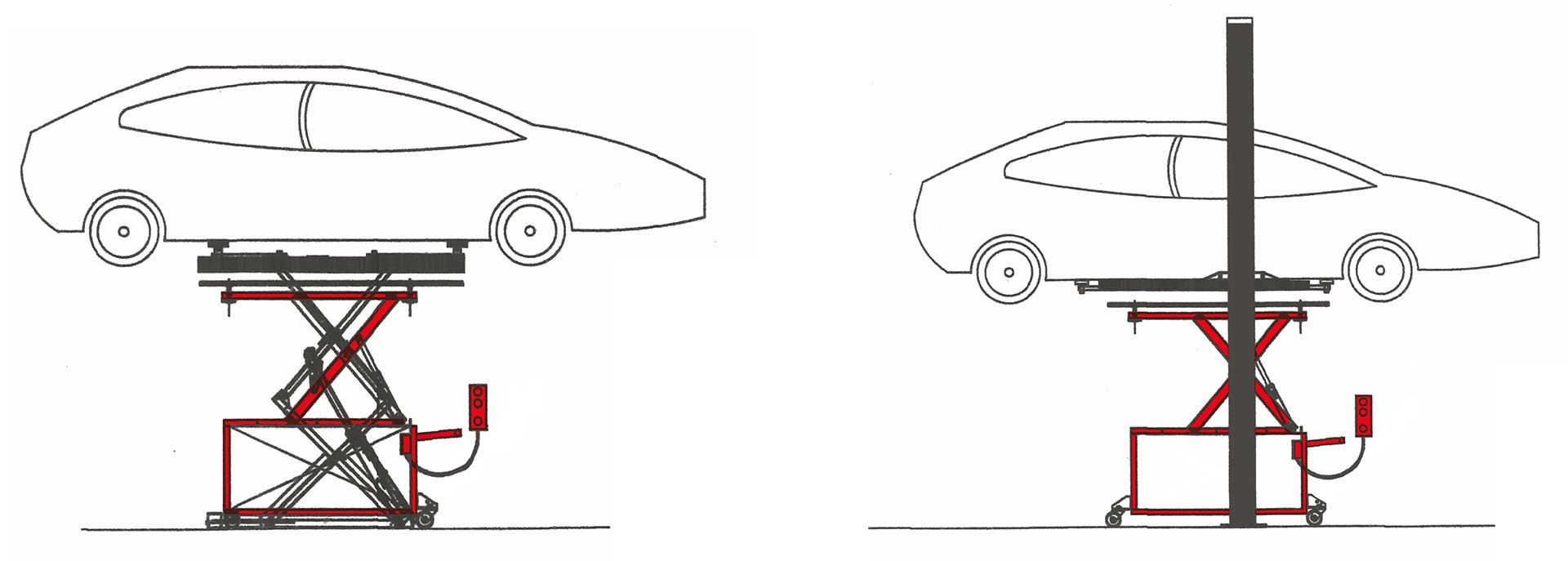 Il sollevatore carrellato M16 è stato ideato per avere un libero accesso su tutti i lati del veicolo permettendo all’operatore di raggiungere mediante apposite finestre i punti di fissaggio della batteria dell’auto. Il telaio mobile in acciaio è oscillante su quattro robuste molle per meglio adeguarsi alla sottoscocca della vettura. Sostiene 4 tavole mobili in legno multistrato resinato per l’appoggio diretto della batteria in condizioni di isolamento. Una pulsantiera mobile contiene i comandi di salita/discesa e blocco/sblocco, in questo modo sempre a disposizione dell’operatore.